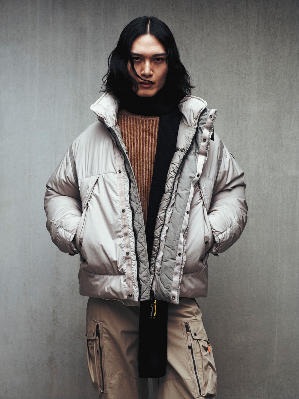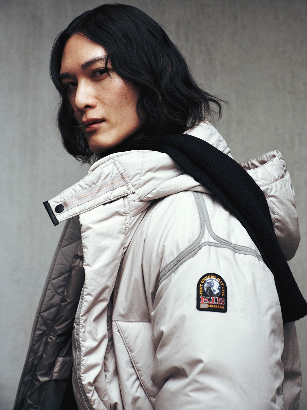 Бренд Parajumpers — это проект, возникший в результате сотрудничества Ape и дизайнера Массимо Россетти, который имеет многолетний опыт работы в качестве дизайнера верхней одежды, а также импортера американских брендов на итальянский рынок. Встреча с военнослужащим 210-й спасательной эскадрильи в печально известном баре в Анкоридже, Аляска, вдохновила Массимо Россетти на создание последнего творения. Результатом стала чрезвычайно инновационная коллекция верхней одежды с высокотехнологичными компонентами, созданная, прежде всего, для функциональности. Вдохновение Бойцы 210-й спасательной эскадрильи, базирующейся в Анкоридже, Аляска, хорошо подготовлены к экстремальным спасательным операциям и эвакуации в самых диких, самых отдаленных и враждебных уголках земного шара. Будь то корабли, дрейфующие в море, скалолазы, застрявшие на вершине 4000-метровой вершины, или подводники, затонувшие на невообразимых глубинах, эти люди призваны вмешаться. Это PJ – сокращение от PARAJUMPERS. Крепкие и отважные, они обучены лучше, чем любой другой военный корпус, но, что самое важное, они используют свои навыки и методы для спасения жизней. Изделие Эти куртки изготовлены из прочного нейлона и оснащены съемной пуховой подкладкой и капюшоном с меховой отделкой. Воротник застегивается на крючок, используемый в парашютном спорте. Спереди находится большой многофункциональный карман на молнии, содержащий еще три кармана, предназначенных для хранения аксессуаров, таких как iPod, GPS-устройства, мобильные телефоны и т. д.